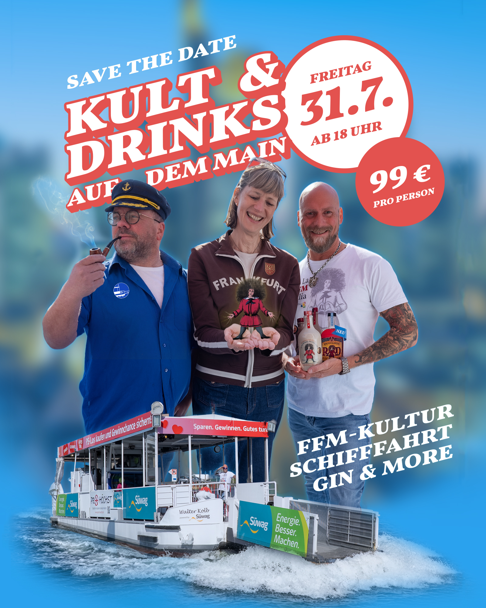 Frankfurt im Herzen. Struwwelpeter auf dem Rücken. Prost!